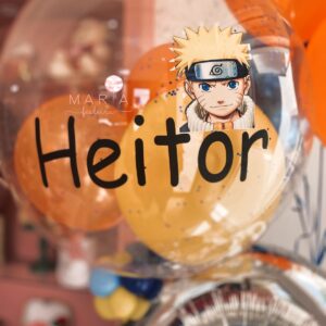 NARUTO – Max decoração temática com número metalizado, buquê de balões e bolha personalizada com detalhes no tema