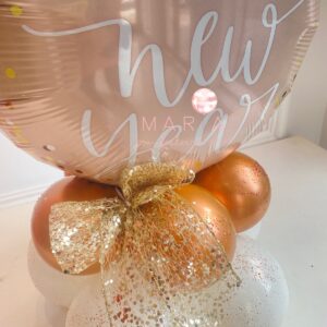 - 1 Balão metalizado e personalizado HAPPY NEW YEAR – cores Rose gold e dourado (disponível)