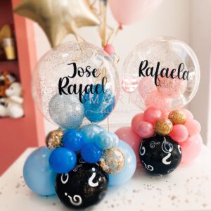 - Balão Revelação Personalizado: No centro da decoração, um balão recheado com a cor do sexo do bebê, pronto para surpreender todos os convidados.